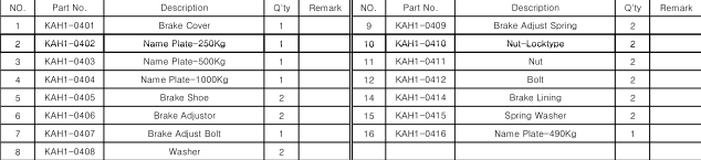 KHC氣動葫蘆制動器總成部件參數: